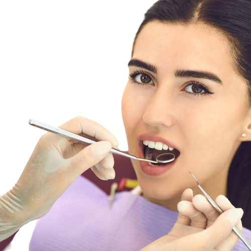 The hygienist or dentist performs a full exam, which may include reviewing your dental history and taking X-rays.
